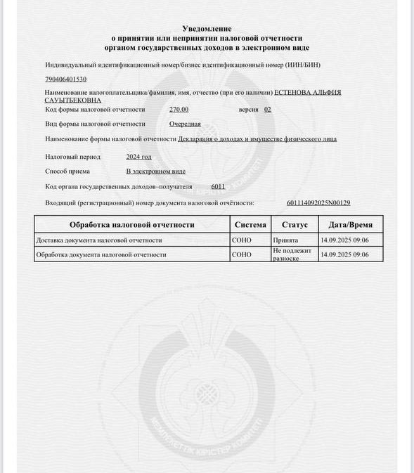 » Жеке тұлғаның табысы мен мүлкі туралы декларация