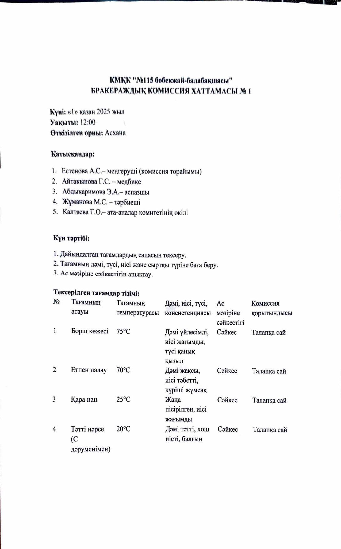 КМҚК "№115 бөбекжай-балабақшасында" 1-педагогикалық кеңес өтті